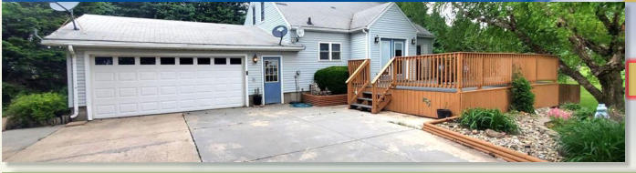 large, shaded deck, perfect for everything. The modern kitchen with eat- at bar opens